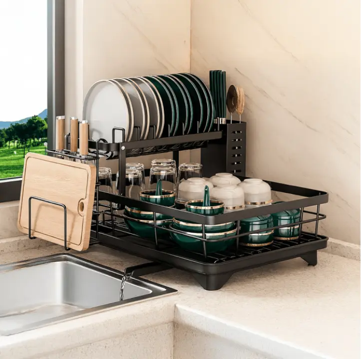 Modulo escurridor vajilla2 niveles + accesorioAlto: 23,5 cm / Ancho: 30 cm / Largo: 42,5 cmMaterial: HierroColor negro